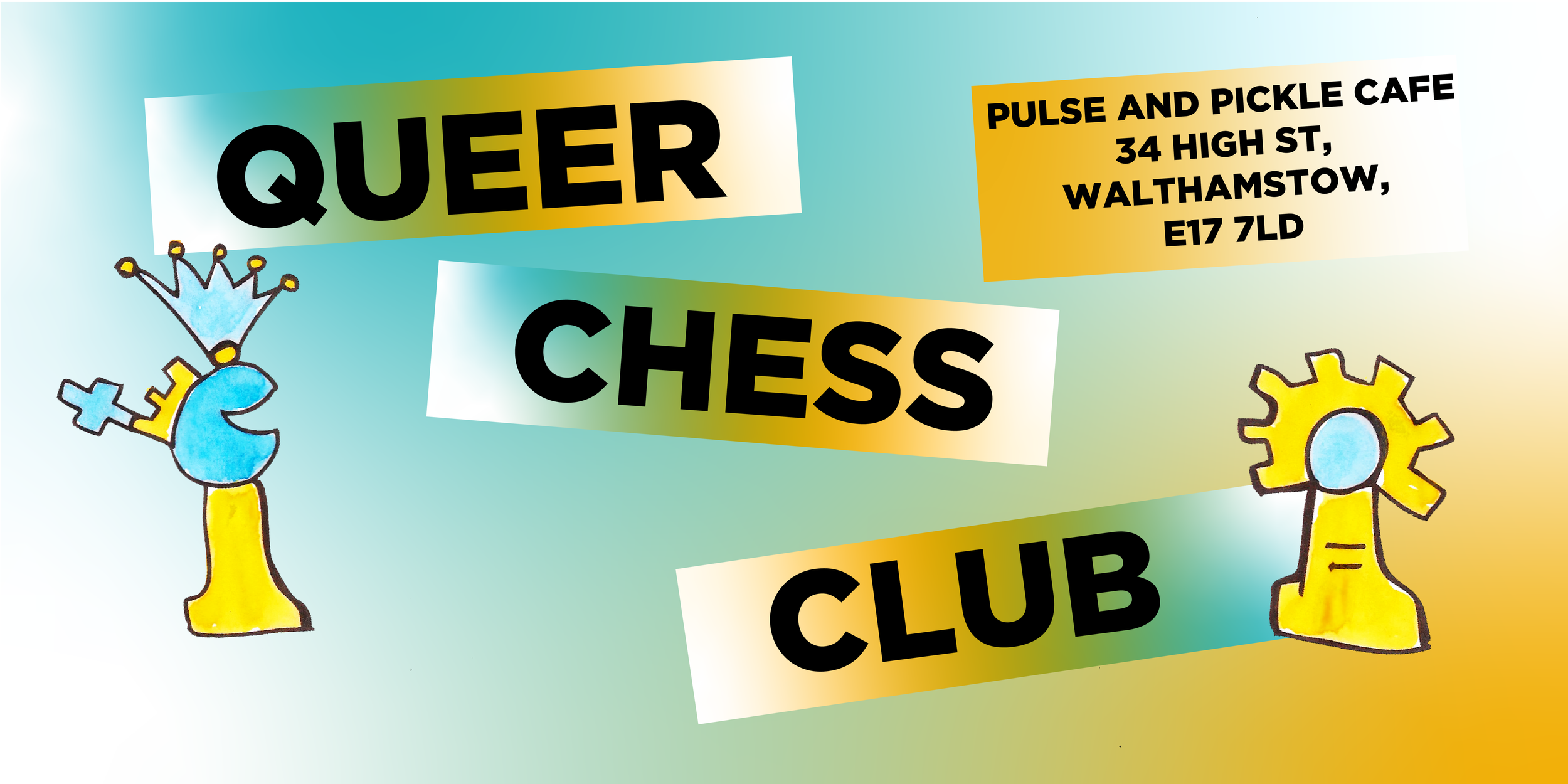 Facilitators from Chess for All will be there to welcome you and support your game. Whether you're a total beginner or want to improve, all levels are welcome. Queer Chess Club breaks away from traditional barriers and makes chess fun and empowering.