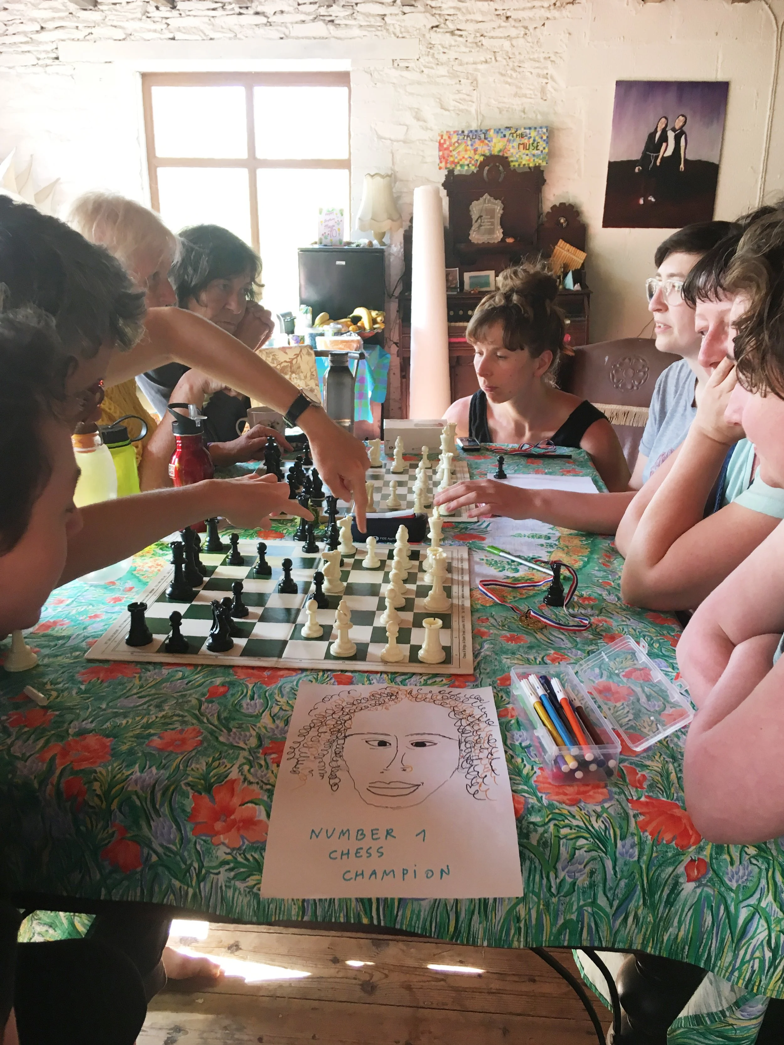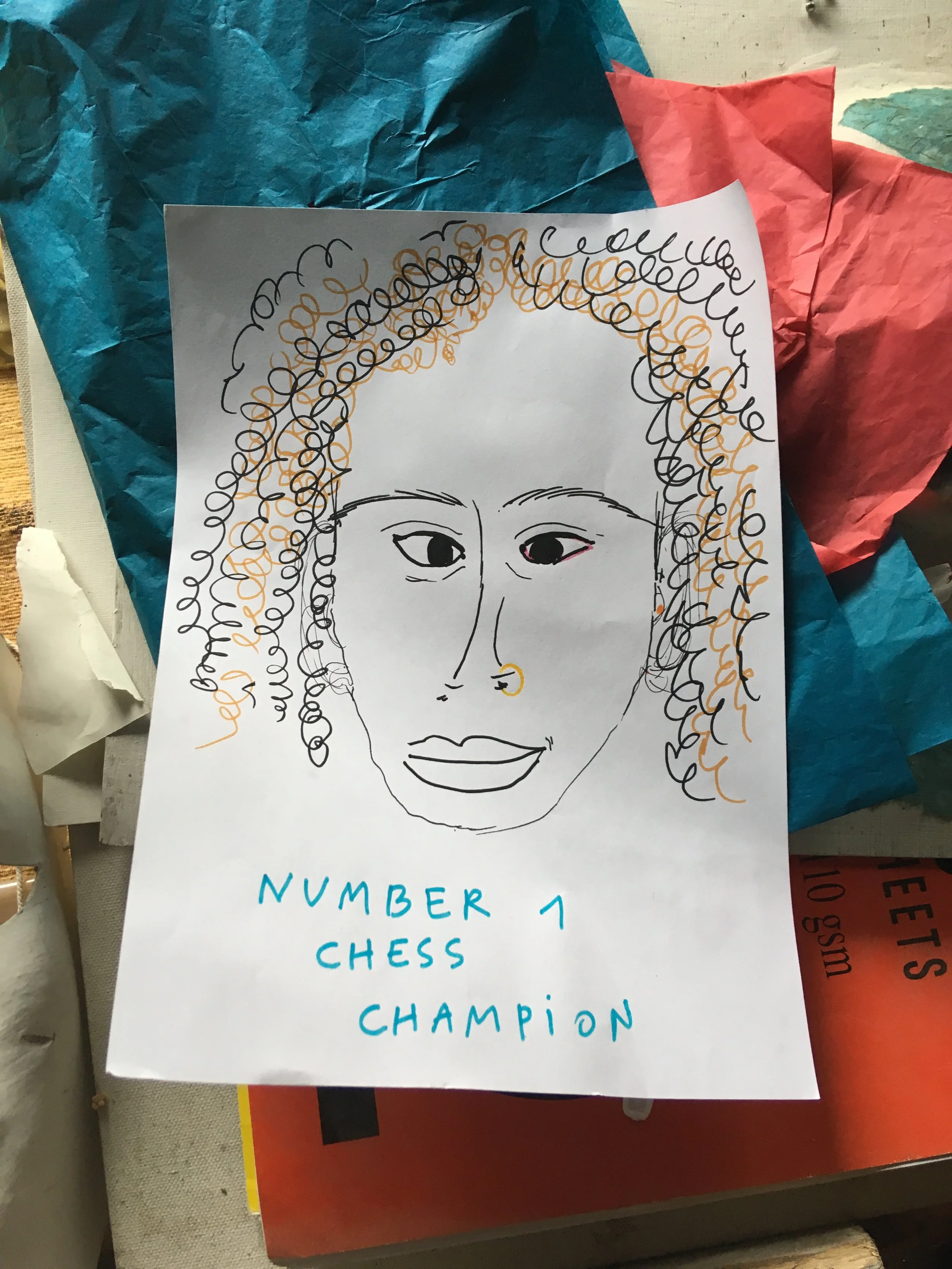 We learnt the basic moves and made a collective drawing of a portrait of the next woman or non-binary chess champion of the world.
